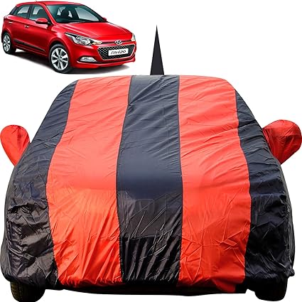Autofact Car Body Cover For Hyundai Elite I20 With Mirror And Antenna Pocket Light Weight Triple Stitched Heavy Buckle Bottom Fully Elastic Red