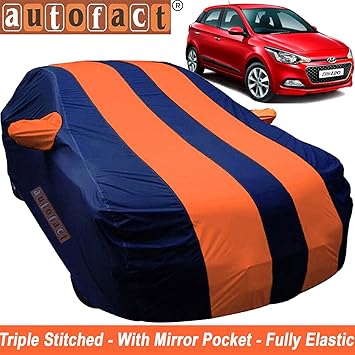 Autofact Car Body Cover For Hyundai Elite I20 Mirror Pocket Fabric Triple Stiched Fully Elastic Orange Blue Color